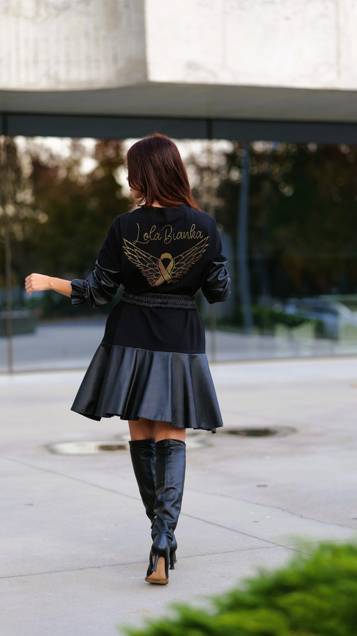 Este vestido em algodão tem conforto e sofisticação com um design único. As aplicações em ecopele trazem um toque moderno e arrojado, enquanto os detalhes em strass acrescentam brilho e glamour na medida certa. O cinto completo o visual, conferindo leveza e um ar contemporâneo. Ideal para eventos onde estilo e conforto são indispensáveis, este vestido é a escolha perfeita para quem deseja destacar-se com elegância. Combine com acessórios discretos para realçar seus detalhes ou opte por complementos ousados para um look ainda mais marcante!